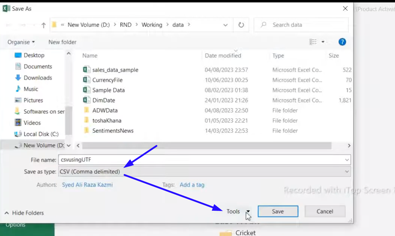 Wählen Sie CSV UTF-8 (durch Kommas getrennt) (*.csv).