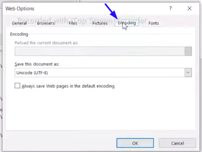 Wählen Sie unten „Kodierung“ → „UTF-8“.